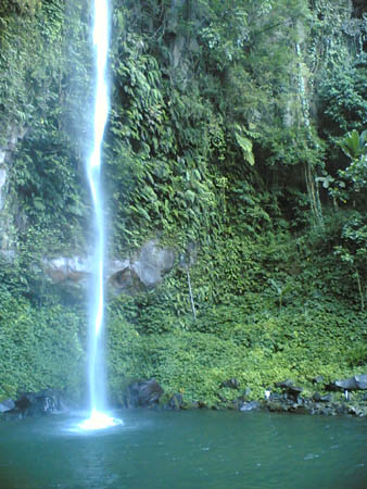Katibawasan Falls is one of the treasured gifts nature has blessed the island of Camiguin.According to the locals, the Waterfalls measures about 250 feet high, cascades to a rock pool surrounded by ground orchids, wild ferns, trees and boulders.The falls rushes down into its green pool that is really refreshing for a good swim. Tourist are welcome to swim. It is an ideal place to cool off during hot and humid days. There is however an entrance fee of 30 pesos per person since the falls is maintained by the province. Giant ferns decorate the surrounding land, carpeting the spaces and huge trees and dropping vines provides the backdrop the falls.