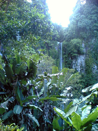 If you have already rented a vehicle in Camiguin Island, you will have no problem finding this famous spot as the driver ala tour guide will eventually take you there. Please take note that it is advisable not to rent a tricycle or a two wheeled roofed cart attached to a motorcycle the locals call "Rela". There is a certain portion along the paved road that is so steep, the Rela may not have a problem going up without passengers, but going down is a dangerous when the cart is fully loaded as the motorcycle's disc brake is not designed to hold the extra capacity. Tricycles and Relas are now prohibited to climb up past the bridge because an accident that happened 2 years ago. If you brought along your vehicle with you, the falls is really very accessible. If our reference starting point is the town proper of Mambajao, make your way along Camiguin's national highway going south. Not so far from the town, you will see a sign board to your right indicating the way to the Provincial Building and Katibawasan Falls (direction going up the mountain). As you ascend, you will pass by the Provincial building. Another junction will take you to Camiguin Highlands Resort, turn right to continue your way to the Falls. You will reach a bridge which will signal that the ascent is already steep. When you reached the deflection point leveling the road, the pave road will also end. the wide fire (rough) road will lead you to the entrance gate of Katibawasan Falls.